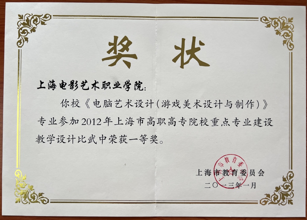 2012年游戏艺术设计专业荣获上海市高职高专院校重点专业建设教学...