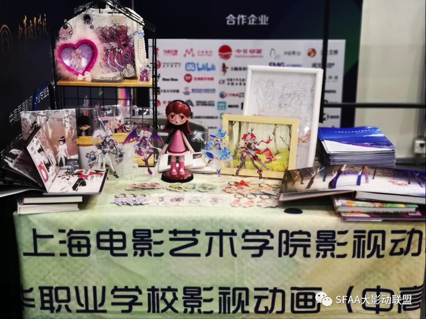 上海电影艺术职业学院在上海市动漫行业协会的支持下,在A108展位展出了学生丰富多彩极具创意的作品,作品主要来自于影视动画专业和动漫设计专业的毕业设计作品和漫联创客的项目实践作品。这些毕业作品的衍生品囊括了盲盒、明信片、绘本等,漫联创客的衍生作品主要以鞋子哥哥和帽子姐姐为主要元素,设计出一系列的作品。这些作品充分体现了专业学生的三年学习成果和实践水平,也体现了中高贯通高水平建设丰硕成果和深刻内涵。