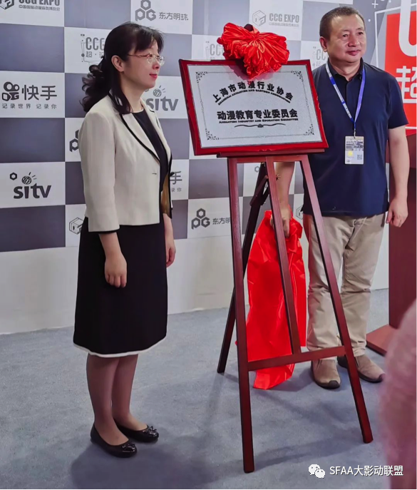 2022年6月16日上午,上海市文化和旅游局产业处处长吴琼和上海市动漫行业协会会长、上海炫动传播文化有限公司总经理郭炜华在CCG EXPO现场演播厅为动漫教育专业委员会揭牌。在上海动漫发展的大潮中,上海市动漫行业协会不仅着力促进上海动漫行业的发展,还致力于上海动漫行业人才的培养。从2018年起,上海市动漫行业协会就积极联合上海电影艺术职业学院和中华职业学校,举办了多次动漫职业技术培训和动漫教育研讨会,由此决定合作成立动漫教育专业委员会,努力打造一个“产教双向赋能”的优质合作平台,加强高水平贯通影视动画专业建设,擦亮上海动漫教育品牌。两位揭牌人也表示在今后的工作中,希望专委会能为上海动漫行业人才队伍的建设添砖加瓦。