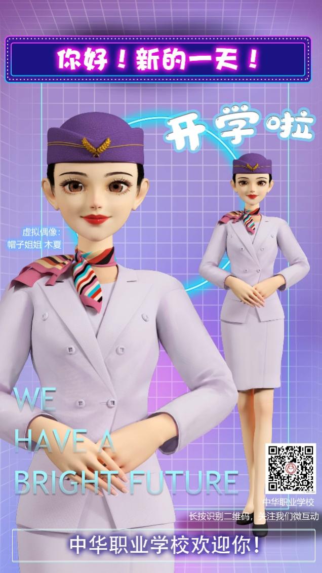 数字虚拟人“木夏”作为中华职业学校空乘专业代言人海报