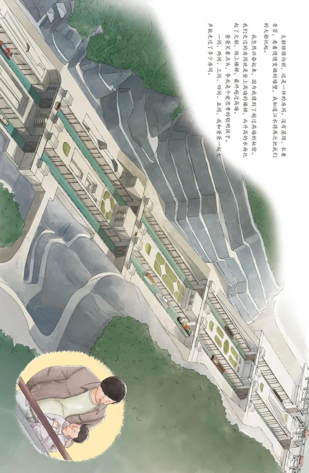 05《天边有座高高的墙》是一套讲述了我国三峡大坝工程的建造和知识的儿童绘本。绘本从“我”的角度出发,讲述了“我”和爸爸的长江之旅,通过轮船行驶过三峡大坝的游览经历,感受从下游经过五级船闸到185米高的上游,让小读者了解到中国当代水利建造智慧,如何改造大自然,而变水患为能源。