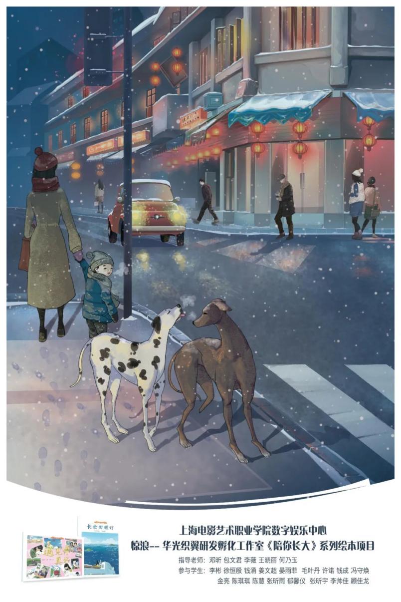 数字娱乐中心依托上海市动漫行业协会、动漫教育专委会,联合惊浪文化、中国动漫集团、今日动画、腾讯科技、澧泉文化等行业典范企业,建立产教融合一体化育人机制。数字娱乐中心与研发型企业“惊浪文化”共建双主体实训工作室——惊浪·华光织翼研发孵化工作室,以用“新”讲好中国故事为建设目标,用匠心精神和最新技术围绕“绘本+”概念进行艺术创作。研发高水准的艺术绘本,先后参与演员孙俪主编的保护流浪动物绘本——《陪你长大》系列、参与绘本画家邓昕主持的原创绘本,讲述中国建造文化的《美丽中国智慧建造》系列绘本、弘扬古代中华国宝的《国宝小档案》系列绘本、讲述中国造船伟业的《船厂里的爸爸》绘本以及讲述中国海军历史的《向着大海出发》。同时以绘本内容创作为核心,进行绘本动画电影、VR虚拟现实互动游戏、绘本衍生产品设计等全方位开发,实现“绘本+”的创作模式,把数字娱乐专业群的所有相关专业的实践教学串联起来,真正做到对接数字娱乐产业链发展这一产教深度融合的目标。