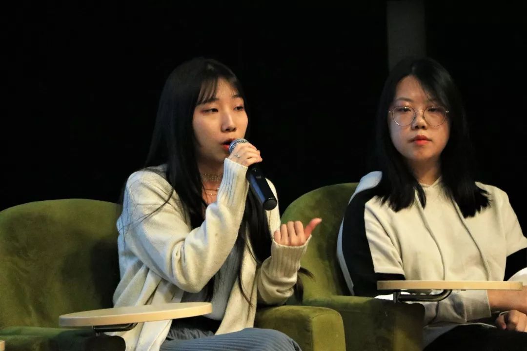 在两位大咖发言结束后,最后进行了光翼·大咖谈的论坛部分,邀请了六位嘉宾上台共话同学们最为关心的实习与就业问题,在对当前企业用人要求方面,今日动画公司副总裁章义苓表示,作为学生自身来说,最重要的不是你现有的专业水平,而必须具备很重要的几点:一方面是你对工作的热情,其次是你的学习力和执行力。她建议同学们在实习过程中一定要有那份对待工作的执着和拼劲儿。两位中高贯通的学生代表也就自己的实习经历向同学们做了精彩的分享,贺佳妮表示通过企业实习得到了各方面的历练,不仅仅是专业技能,更重要的是自身的综合素质得到很大提高,也会成长得更快。戴蜜蜜对自己参与的项目情况作了简要介绍,她也谈论了产教融合较传统教学有着更多的优势,让她之前所学的知识变得更加系统完善,其对接的行业标准让她的专业水平有了大幅度提升。两名学生代表的发言将整个论坛气氛推向高潮。