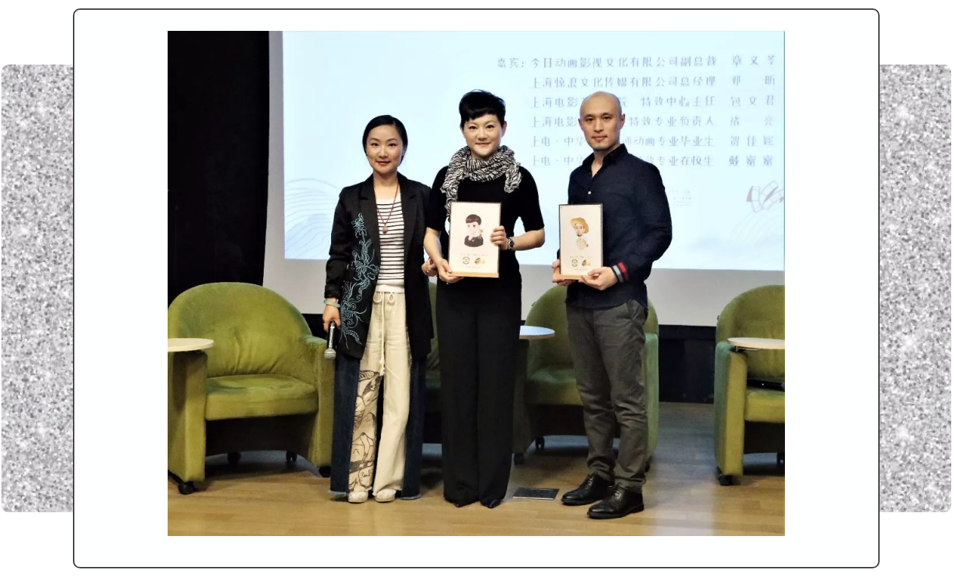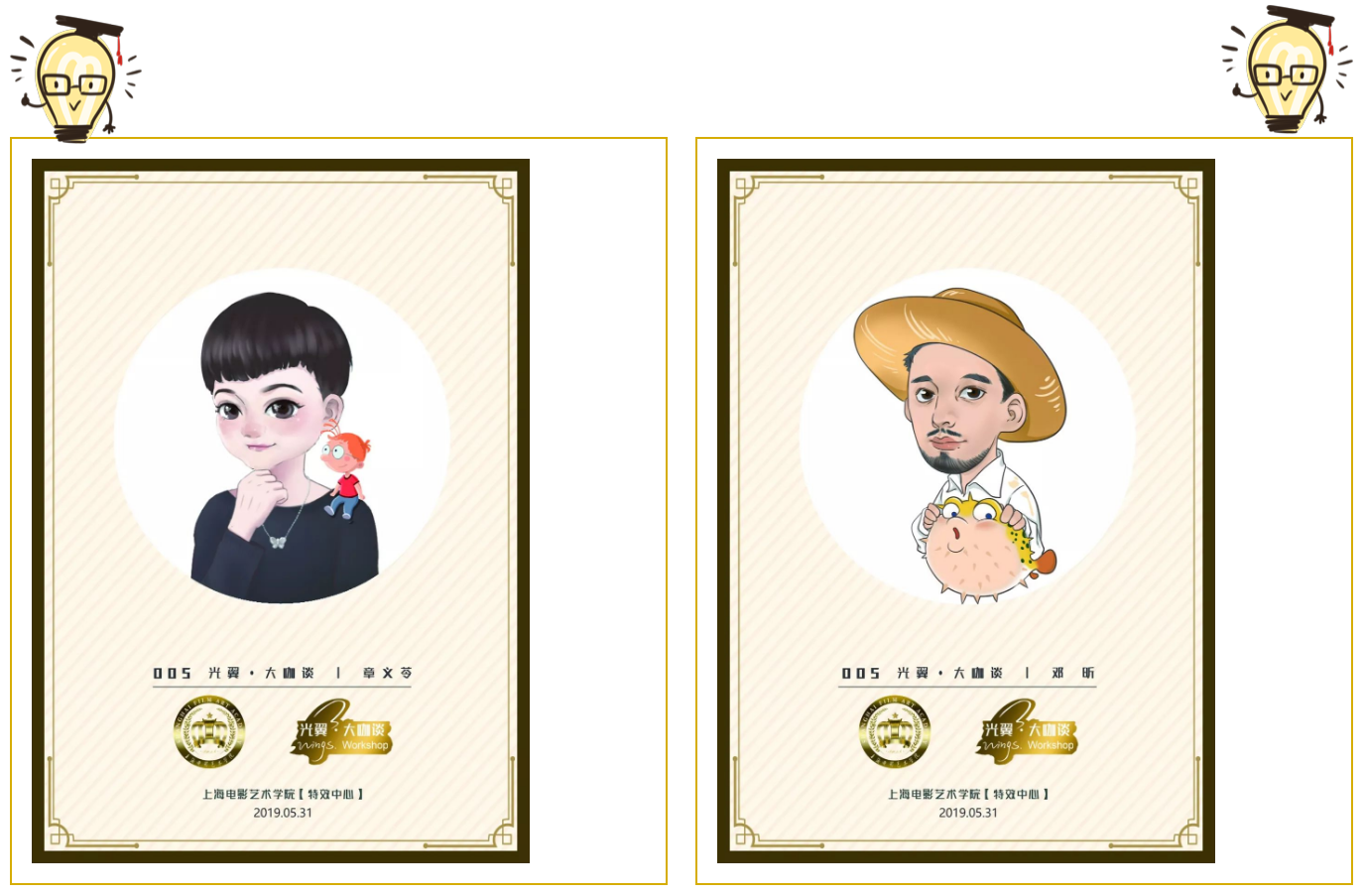 最后,影视特效中心主任包文君向两位企业嘉宾颁发了光翼·大咖谈的大咖证书,证书上印有同学根据真人肖像设计的手绘漫画形象,获得嘉宾们的一致好评。