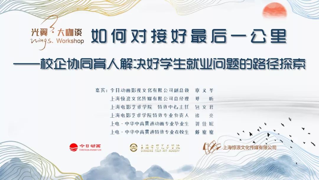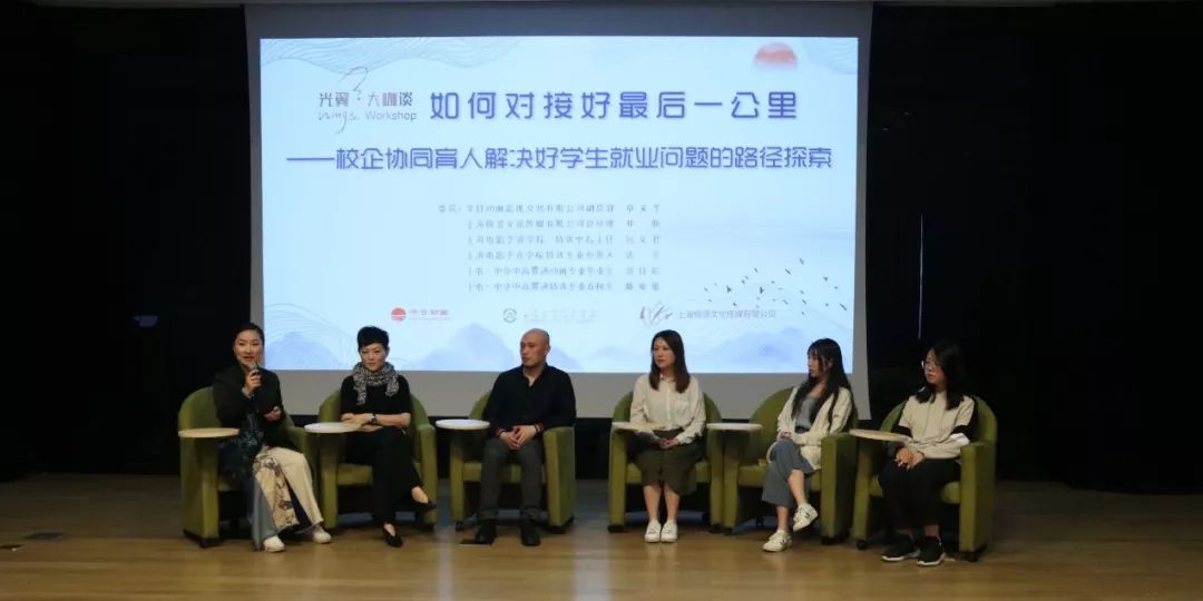 5月31日,在上海市第四届“汇创青春”的活动现场,上海电影艺术职业学院影视特效中心联合中华职业学校系列品牌活动——光翼·大咖谈第四期开讲啦!一场题为“校企协同育人解决好学生就业问题的路径探索”的专业论坛,深度探讨了有关校企合作中怎样培养学生,以及帮助学生解决就业的问题。出席论坛的嘉宾主要有上海市今日动画影视文化公司副总裁章义苓,上海惊浪文化有限公司总经理邓昕,上海电影艺术职业影视特效中心主任包文君,影视多媒体技术专业负责人褚亮,上电-中华16级贯通学生代表贺佳妮,18级贯通学生代表戴蜜蜜。
