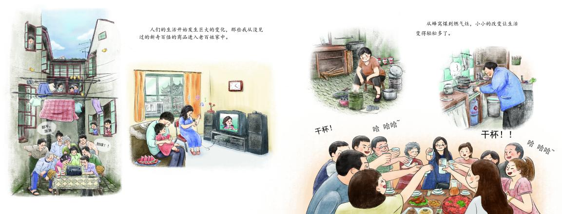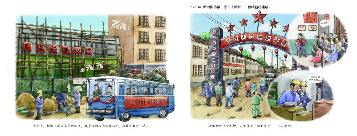 全国解放后,工人们开始忙碌地建设城市,他们不畏艰苦、让人民的生活好起来,我看着大家走在“豫园”的街头,那是从未有过的骄傲与自豪。