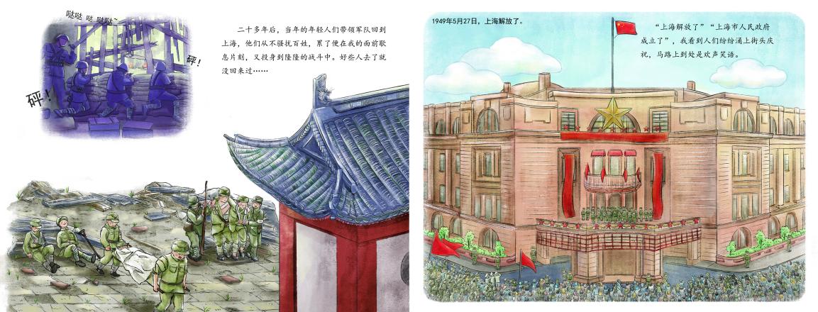 为了解放上海,战士们展开反击,终于——我们迎来了胜利。
