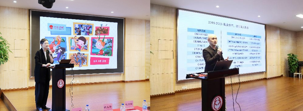 现代学徒制试点项目的顺利申报和实施,离不开行业企业的共同参与,在上海市动漫行业协会大力支持下,我校与今日动画校企合作近十年,与惊浪传媒产教融合近七年,专业建设成效显著,学生成长成才成绩喜人。今日动画章义苓副总以公司“百变马丁”和“中华小子”主要IP为载体向大家重点介绍了今日动画资质实力和校企产教融合项目情况;惊浪传媒公司邓昕总经理从绘本创作,电影后期CG制作等面向市场的实战项目为例,带领学生用专业智慧去讲述讲好中国故事,在项目中养成电影思维、故事思维和导演思维,培养学生主动创意解决问题的能力。当前人工智能AICG的发展,我们面临的时代恰如邓总发言提及的一般,需要了解新技术新工业新流程,提升眼界,做学合一,不断适应未来岗位需求和职业发展需要。