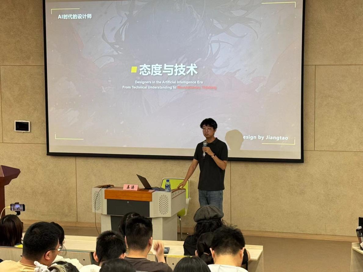 2024年6月18日,由上海电影艺术职业学院、上海市动漫行业协会动漫教育专业委员会以及包文君艺术设计名师工作室共同举办“光翼.大咖谈”活动,活动邀请到了拥有近二十年游戏行业经验的资深游戏设计专家——姜涛老师,为数字学院的老师和同学们带来了一场精彩的大咖分享:AI时代的设计师——从技术理解到思维革新。