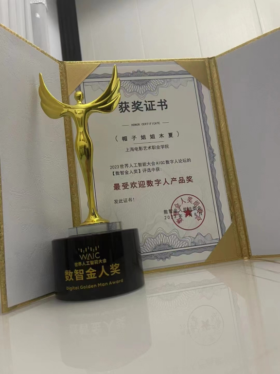 值得一提的是,在2023年,本课程中打造的原创虚拟人“木夏”获得世界人工智能大会AIGC数字人论坛的数智金人奖。