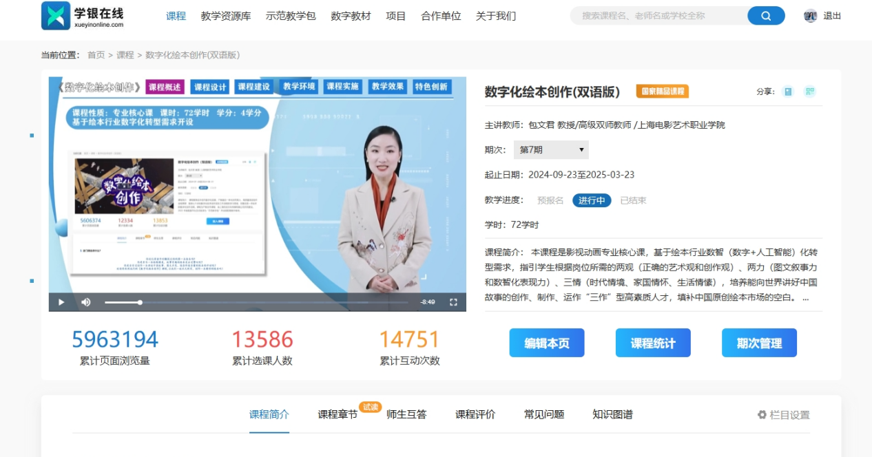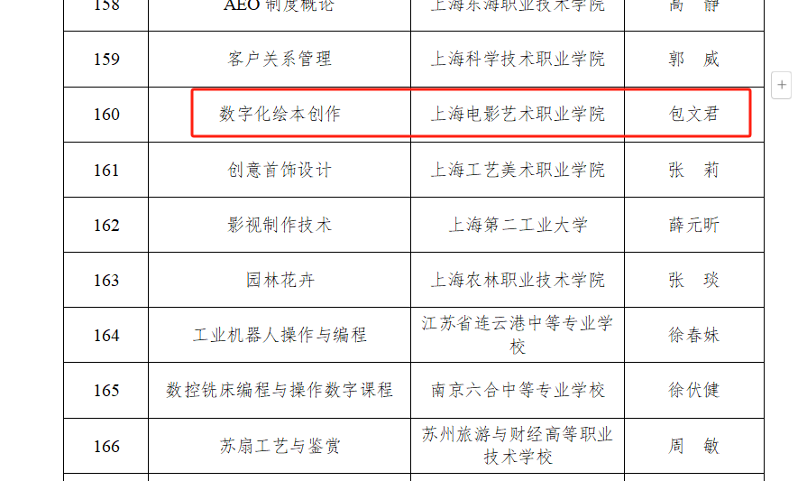 近日,教育部职业教育与成人教育司发布《关于2023年职业教育国家在线精品课程遴选结果的公示》,我校数字学院院长包文君老师团队的《数字化绘本创作》荣获2023年职业教育国家在线精品课程,该课程的入选是上海电影艺术职业学院在数智化教学改革建设中取得的国家级重要标志性成果。