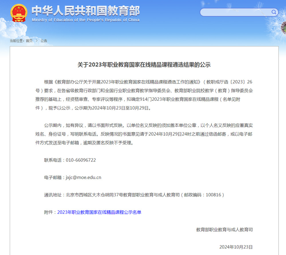 图1:入选课程公示名单
