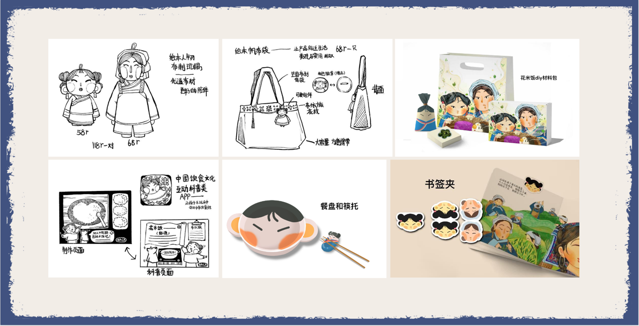 图8 汪雯婧、戴璐怡同学的绘本《花米饭》的衍生周边设计图