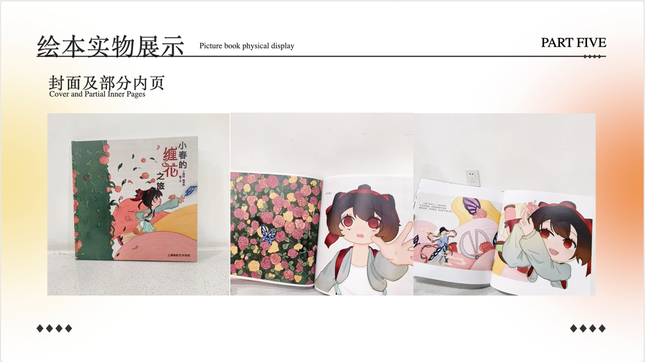 图5 丁雨欣、姚宇柯同学的绘本《小春的缠花之旅》实物展示