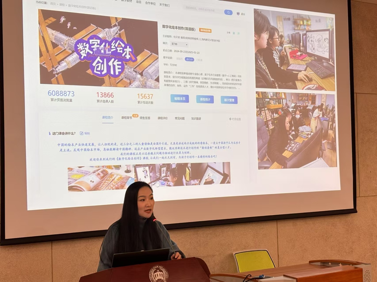 图2 上海电影艺术学院数字学院院长包文君介绍《数字化绘本创作》授课情况