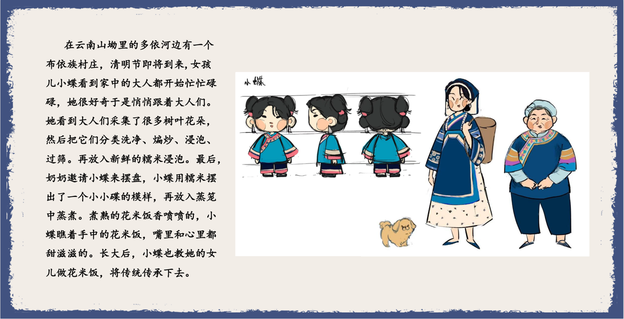图6 汪雯婧、戴璐怡同学的绘本《花米饭》的角色设定图