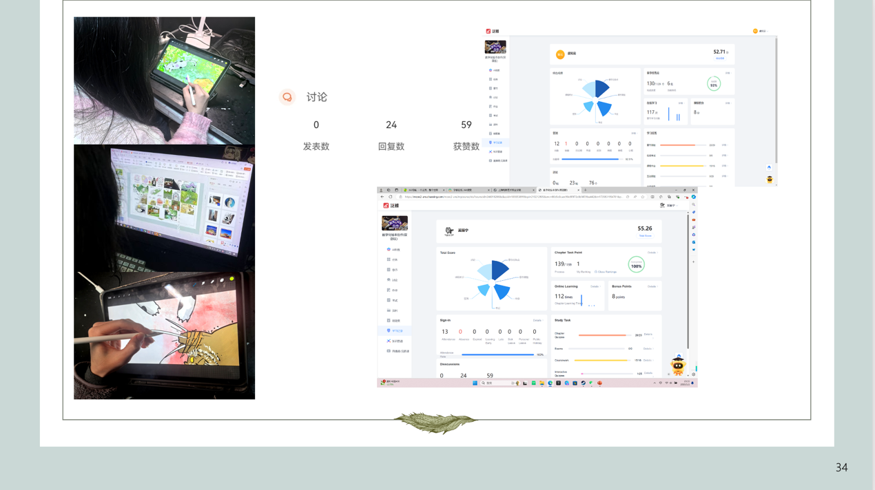 图10 奚俪宁、虞知云同学的绘本《回家的路》学习情况以及工作照