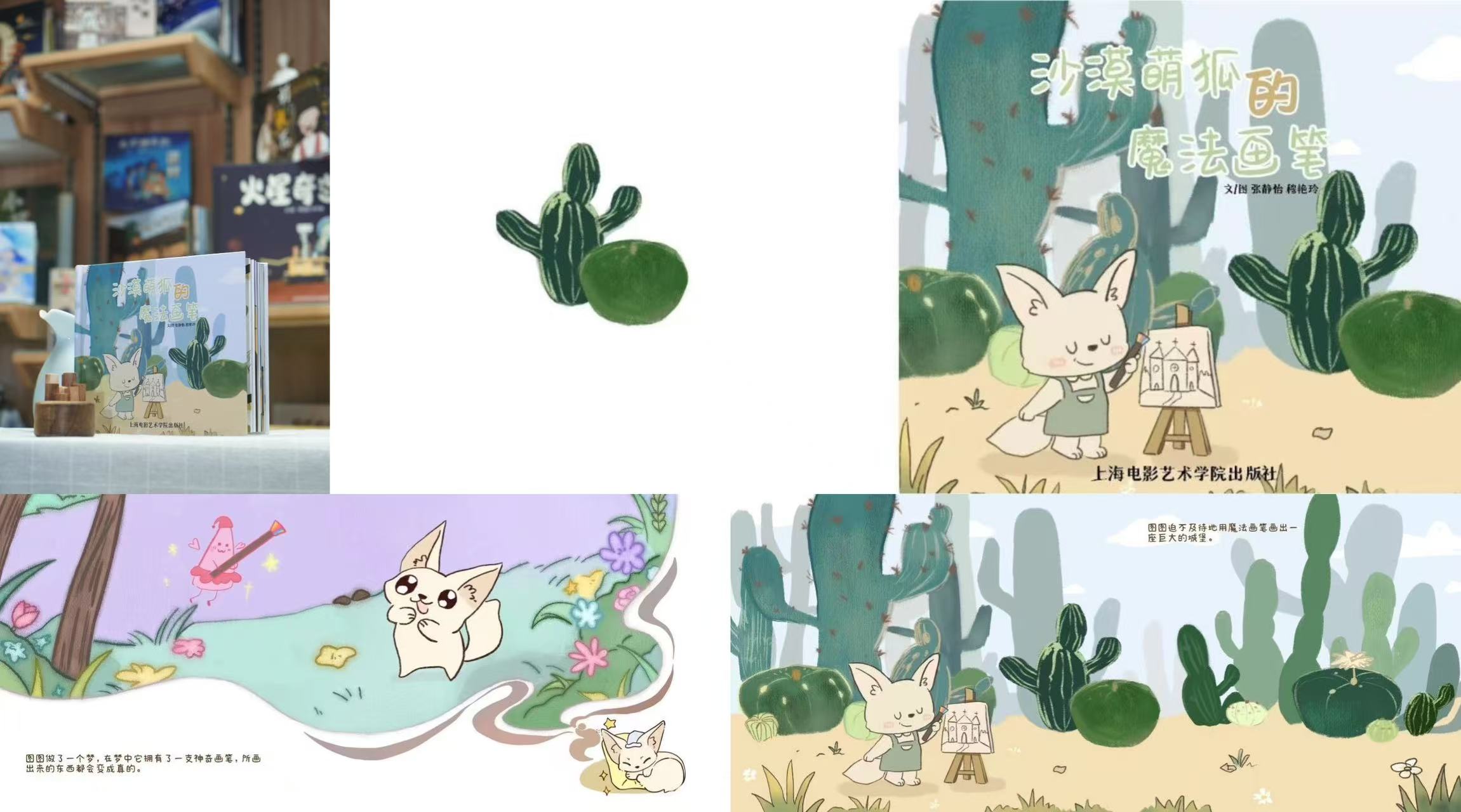 图13 《沙漠狐的魔法画笔》绘本作品成书及部分内页展示