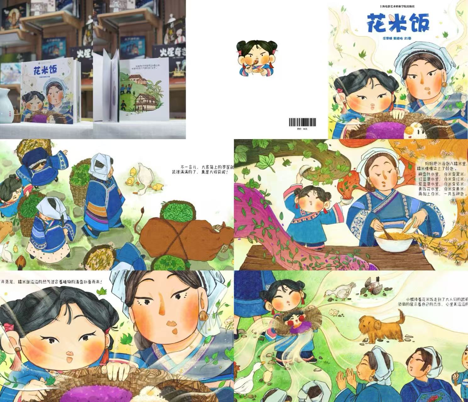 图3 《花米饭》绘本成书及作品部分内页展示