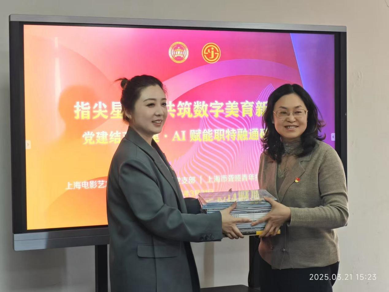 为了进一步促进上海电影艺术职业学院数字学院党建与业务的深度融合,并以党建为引领,推动教育的高质量发展,3月21日下午,数字学院党支部书记高月娇和院长包文君带领学院部分党员教师及入党积极分子,接待了上海市聋哑青年技术学校党支部书记李颖及相关领导和老师一行。双方围绕“AI如何赋能特殊教育”这一主题,开展了富有成效的党支部共建交流活动。通过深入的座谈和实地观摩,共同探讨了党建与教育融合发展的新路径。
