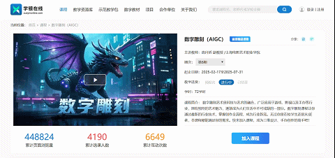 拥有《数字雕刻》《数字虚拟人设计与制作》市级精品在线开放课程,配套全流程资源包、高清实操视频、AIGC 辅助设计工具,支持手机 / PC 端无缝学习,打破时空限制。双师共建课堂,理论实践深度融合。