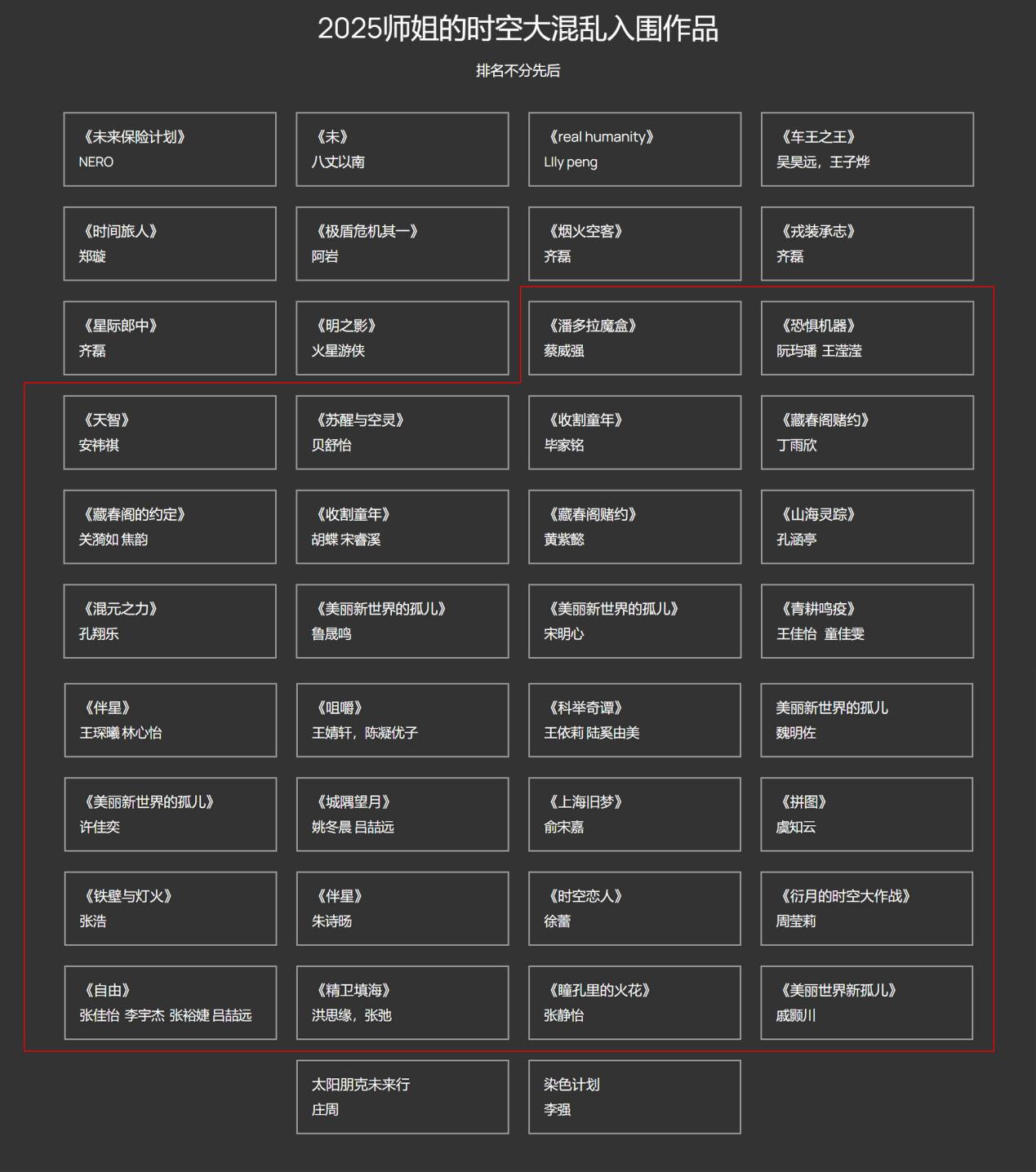 本次 AIGC科幻短片大赛竞争激烈,吸引了众多优秀作品参赛。数字学院师生精心筹备,在学院AIGC联合研创工作室负责AI数字动画方向教学的朱俊老师的统一指导和带领下,共选送 58部作品参赛,这些作品在创意、技术、叙事等多方面展现了极高的水准,最终取得了令人瞩目的成绩:孔涵亭、贝舒怡、王婧轩、陈凝优子、王琛曦、林心怡等同学获得未来探索奖1、优秀改编奖3、最佳 AI技术应用奖1项,三个大奖及 30入围奖。这一系列奖项不仅是对参赛师生专业能力的认可,更是对学院AIGC教学改革与实践成果的肯定。