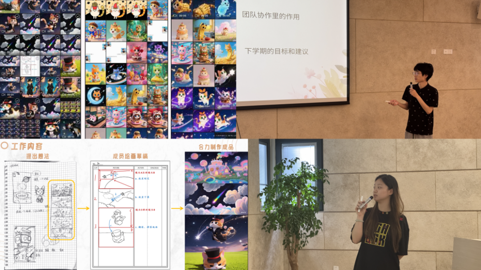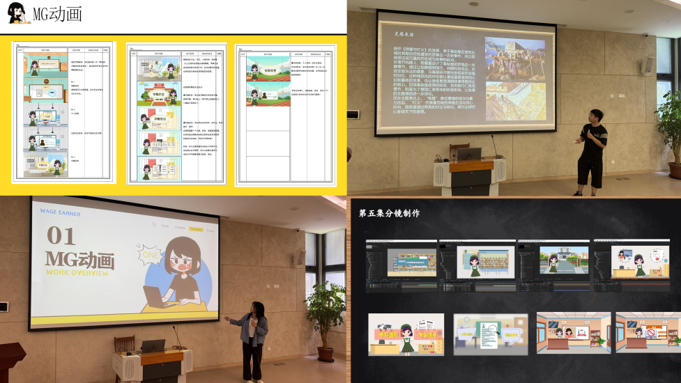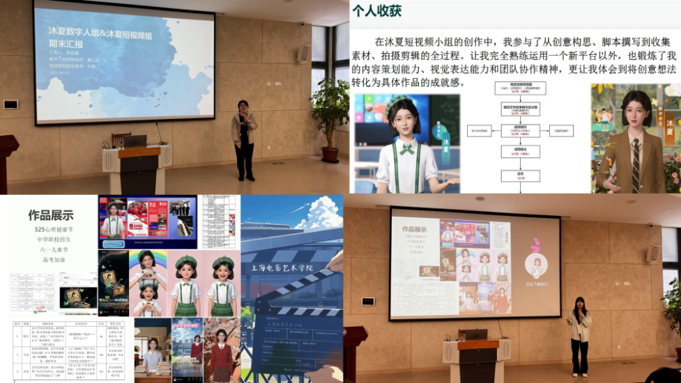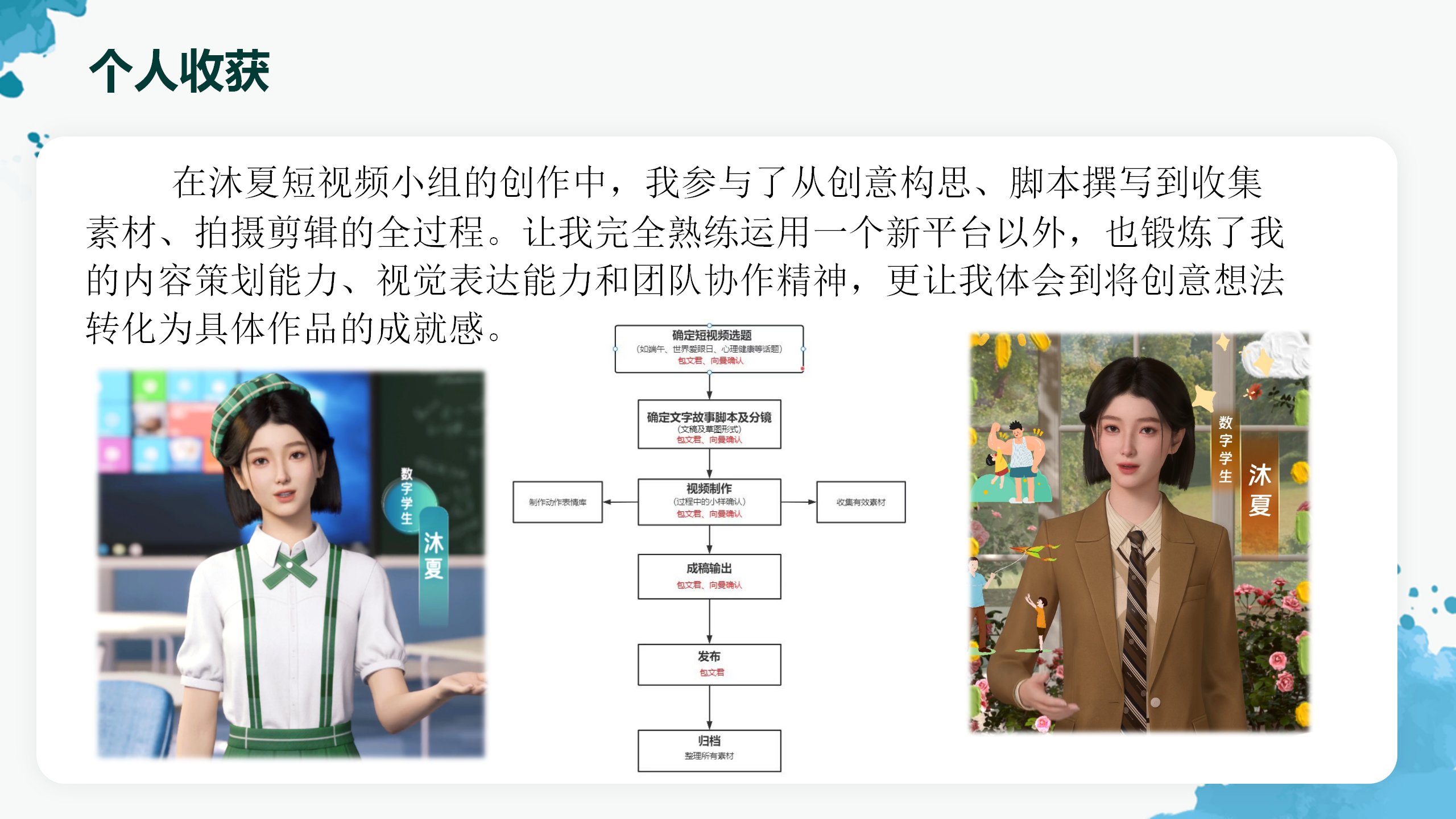首先,沐夏视频号工作组的张裕婕、沈悦同学带来的学习成果,短视频里从剧本构思到脚本撰写、素材制作的创意与活力,展现了新媒体时代的无限可能!这一学期在工作室的实践中她们深刻体会到,工作室不仅是技能提升的平台,更是凝聚集体智慧的成长土壤。