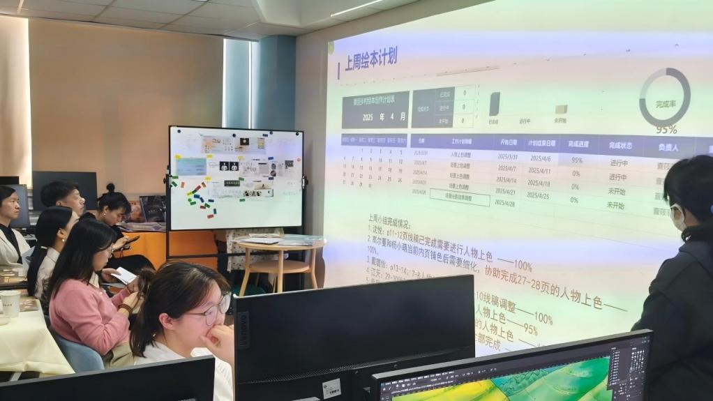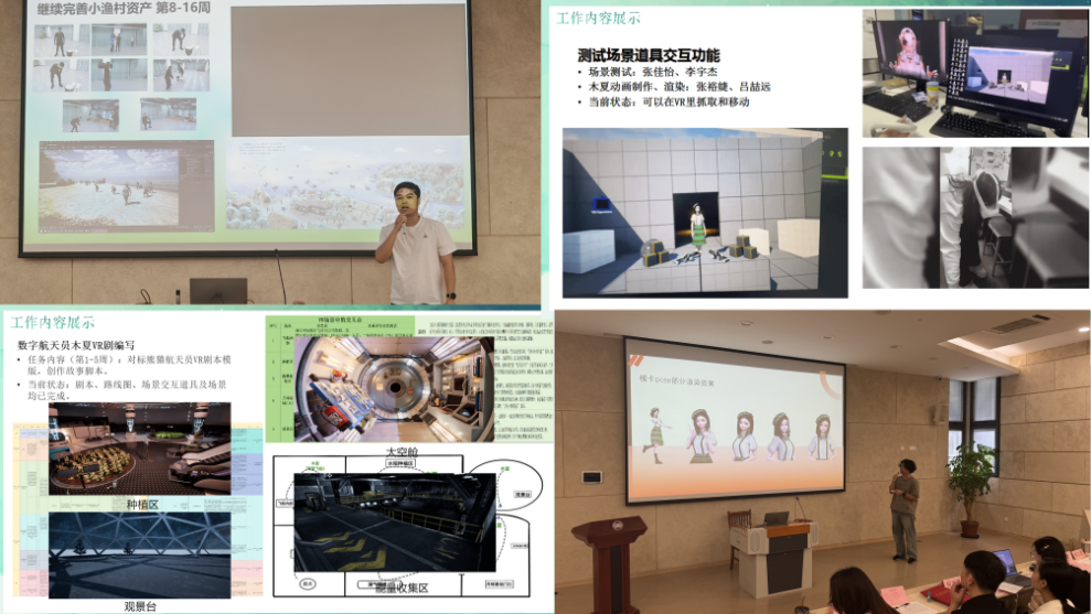 研创中心的项目工作组包括:数字虚拟人研创、功能性游戏研发、数字化绘本创作、数字绘本动画创作、火星奇遇游戏研发、MG数字动画创作、沐夏视频号工作组,共七个项目组。研创中心组织项目组固定每周集中汇报一周的项目进展和下一周任务计划,和带教老师一起,做到有目标、有计划的推进模式,见证了研创中心以技术革新、产能扩容、实践项目支撑的发展轨迹,每一个项目的背后,都是同学们夜以继日的钻研与创新;每一份作品的诞生,都凝聚着老师们的谆谆教导与悉心指导。