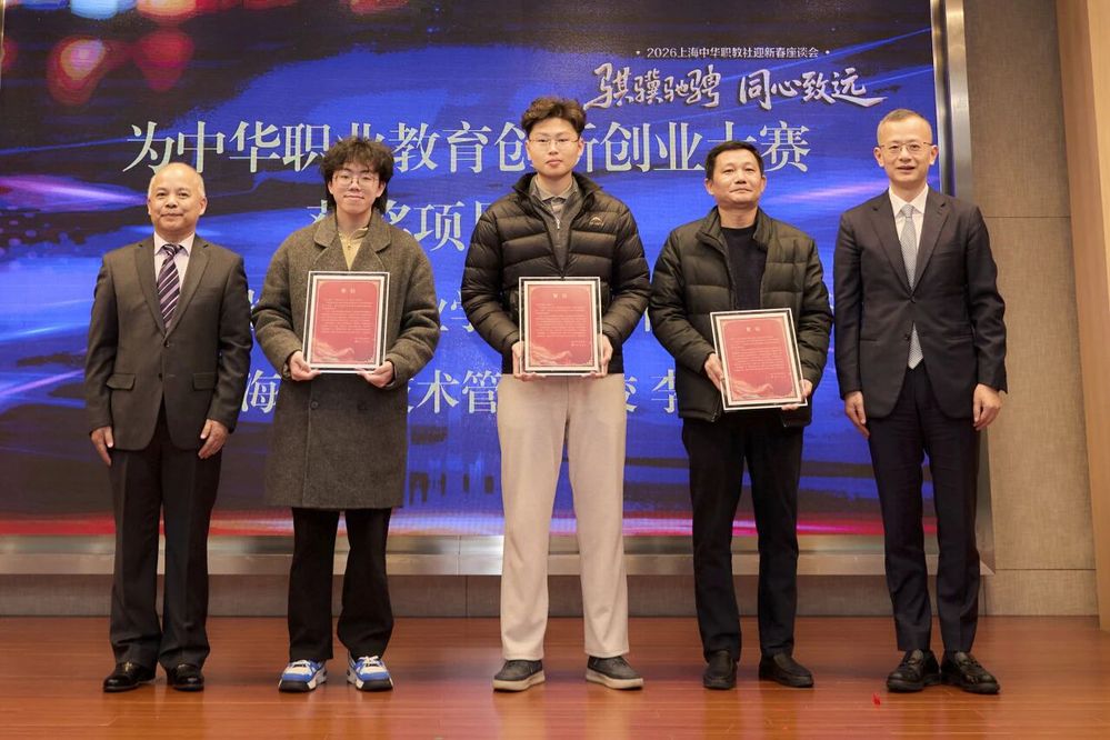 座谈会上,对在第八届中华职业教育创新创业大赛中取得优异成绩的团队予以通报表彰。上海电影艺术学院数字学院游戏专业、影视动画专业束子衡、唐宇钲两位同学,作为大赛国赛金奖获得者代表受邀参会。他们斩获的两个金奖项目,为上海市唯一的两项中华职教社双创大赛国赛金奖,项目团队现场荣获贺信表彰。