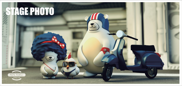 该系类短片也是爱玛集团企业发展战略的尝试,项目中工作室师生不是单纯的完成企业方制作任务,而是参与到原创形象的设计、短视频故事剧本创作、分镜创作,衍生品开发,资产全流程制作,项目流程管理、技术实现手段等环节,也尝试把影视制作流程引入IP开发项目,向企业方建议使用GPU渲染提高工作效率。此类项目的深度参与制作,大大提高了师生制作的积极性与研、创经验的积累,为学生日后的职业发展进阶提供了帮助,也为教师提高自行业技能水平发挥了积极作用。