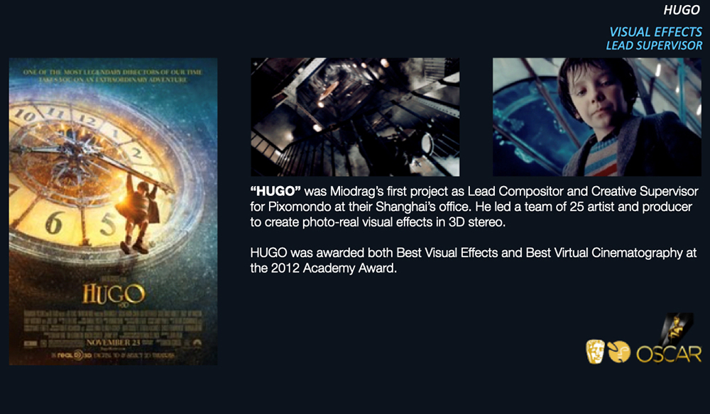 Mio以视效总监身份参与奥斯卡最佳视效获奖影片《雨果》