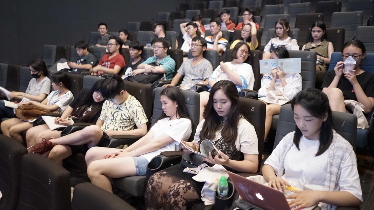 在第二届“汇创青春”上海大学生文化创意作品展示活动开始后,影视编导专业刘言老师便带军向影城出发。在观影途中,专业学生认真观影,并且时不时有人拿拿出笔记誊写,借鉴影片的优秀之处。在影片的最后的提问环节,专业学生积极问答,为下一届的“汇创青春”储备力量。