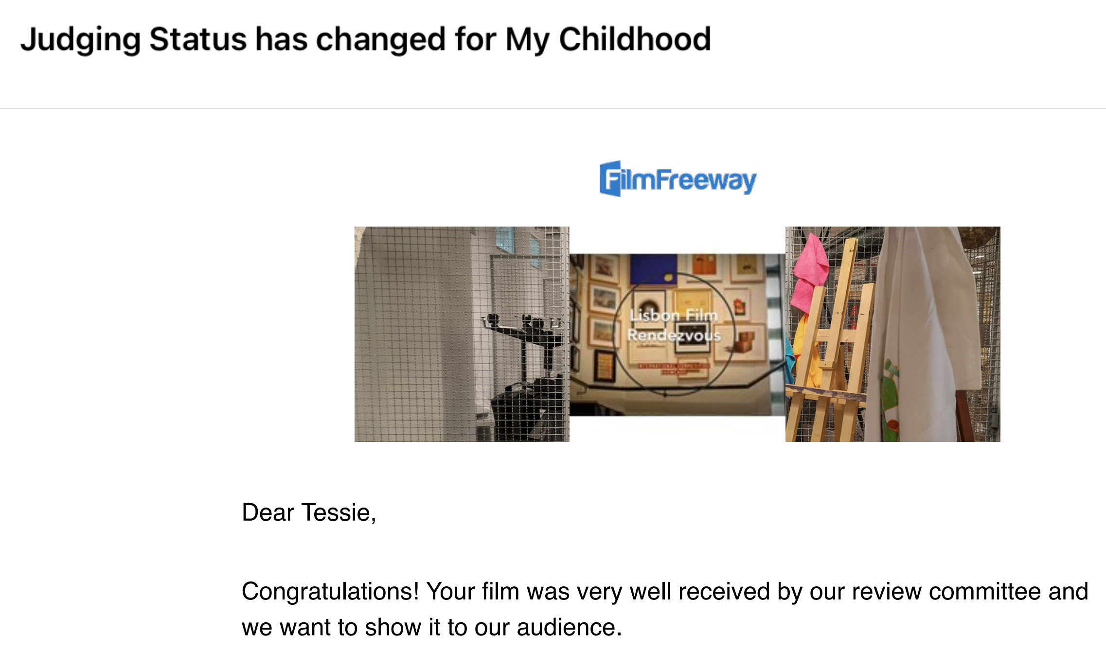 图1 入围里斯本独立电影展半决赛通知
