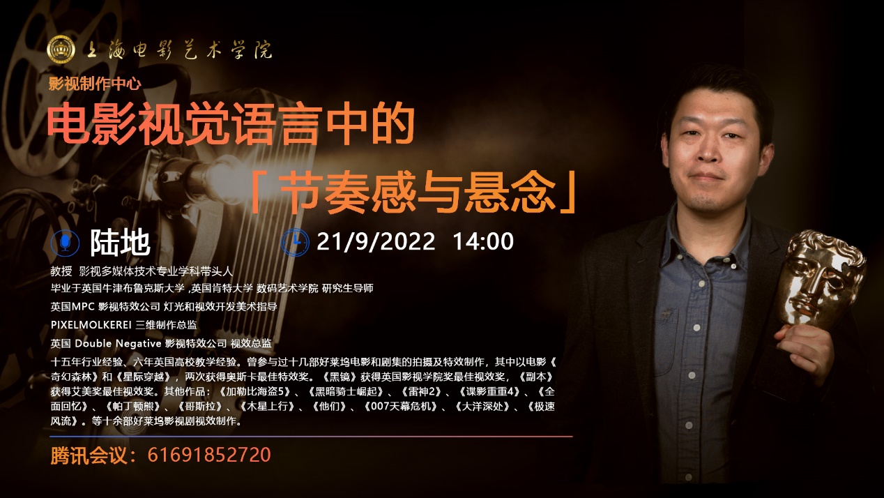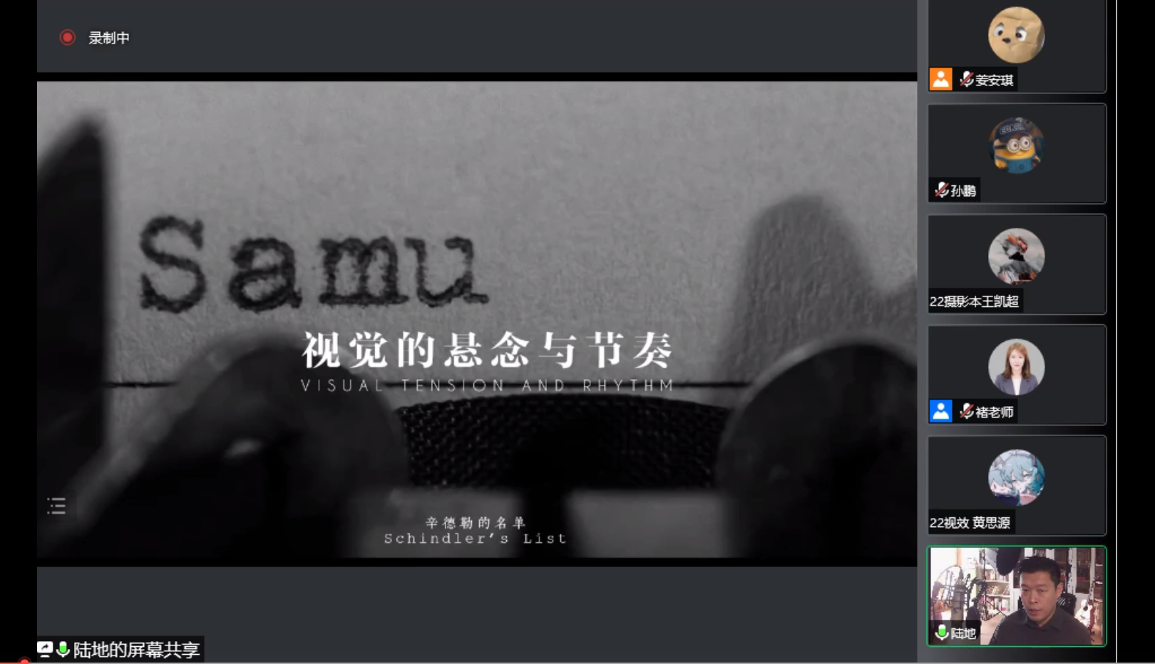 2022年9月21日,影视制作中心请来了陆地老师,为同学们带来“电影视觉语言中的节奏感与悬念”的线上主题讲座。围绕电影视听语言展开,从电影的节奏感和悬念设计上,帮助同学们看懂电影以及正确理解导演的意图,为后续的学习培养正确的思维方式。