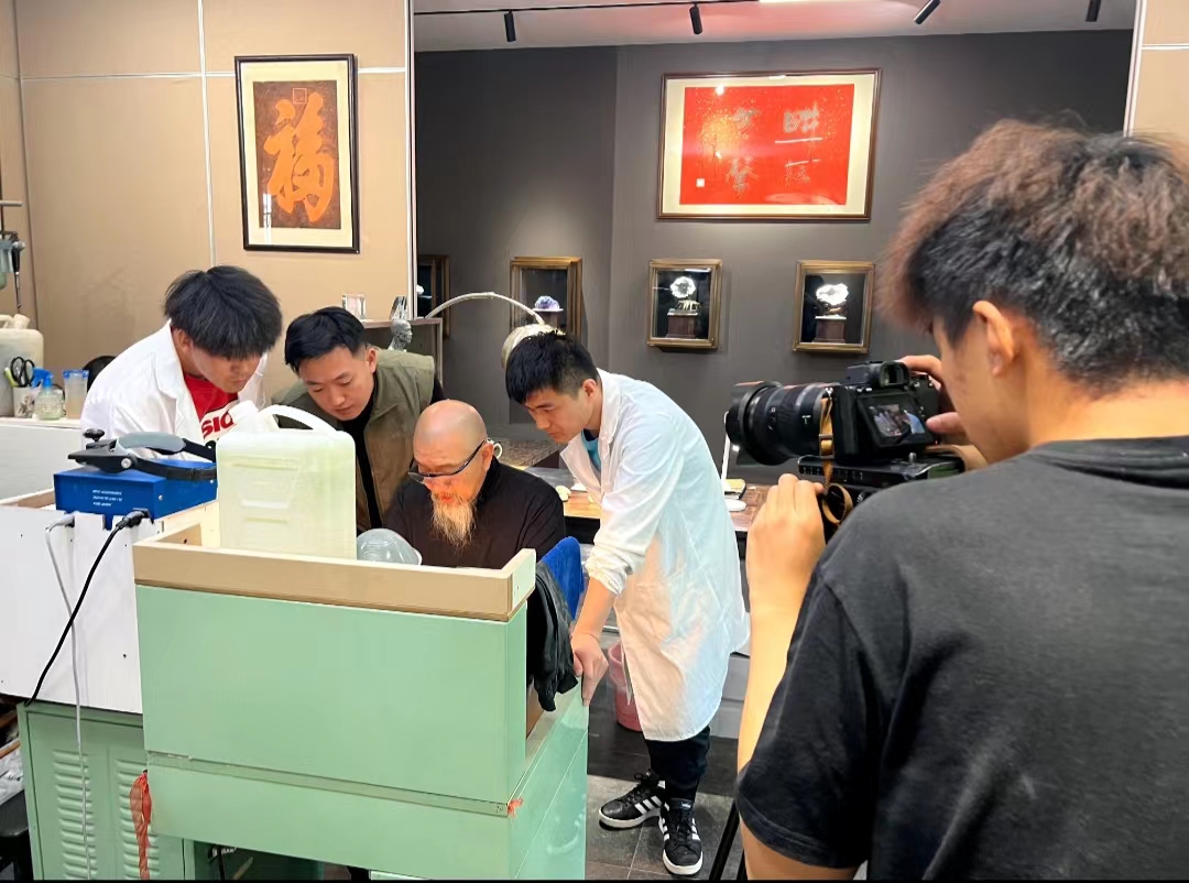 近日,影视制作中心影视编导专业中期工作室师生团队参与了非遗玉雕短片的拍摄。短片采取纪录片的拍摄手段,通过记录吴德昇大师工作、生活,以及与吴德昇老师的深入交谈,进一步了解玉雕文化之魅力。创作团队希望通过《吴德昇》玉雕传承人这一短片,更好地传播翡翠文化及玉雕工艺艺术精髓,促进玉雕技艺的提升,加强中华传统文化的交流。