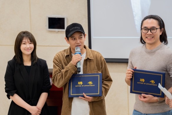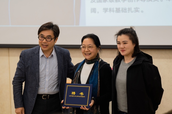 组图 学院影视制作中心主任褚亮,音乐剧专业负责人为柯珂导演,陈星池导演颁发学院聘书