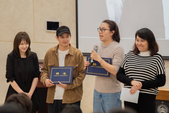 讲座最后,学院副院长李瑞祥,戏剧影视表演专业负责人王雅为王雅男教授颁发学科带头人聘书,学院影视制作中心主任褚亮,音乐剧专业负责人为柯珂导演,陈星池导演颁发学院聘书。相信在未来的学习中,各位导师会为电影学院的学生们带来更精彩丰富的课程。