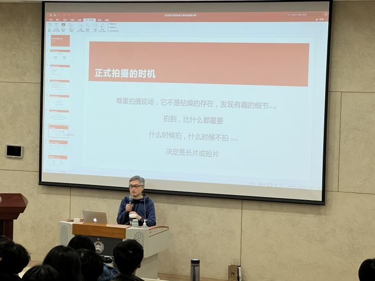 在本次讲座中,丁正导演从选材、拍摄、制作三个方面和大家讲述纪录片拍摄的要点。