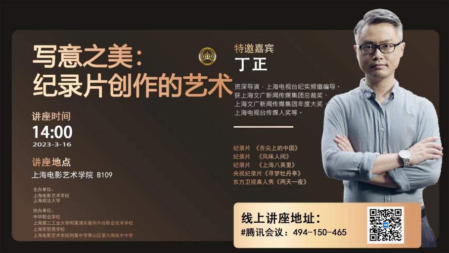 3月16日下午2点,学院影视制作中心特邀《舌尖上的中国》导演、影视制作中心特聘教授丁正老师,为大家带来讲座《写意之美:纪录片创作艺术》!丁正导演曾获得国内多项A类电影节大奖,同时还是上海电视台纪实频道资深导演。