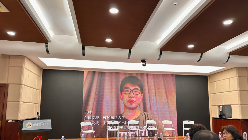 在本次北京国际电影节—中外短片创作人才培养论坛中,影视制作中心毕业生录制的视频与中传,北电,上戏,上大,中戏的毕业生同频播出。毕业生们回顾了在校期间对于电影的学习,畅谈了去国外学习后的感受,认为“上电的教学模式与理念和国外相差无几,很实用,重实操,可以让我们得以在后续的晋升学习中很快上手”。