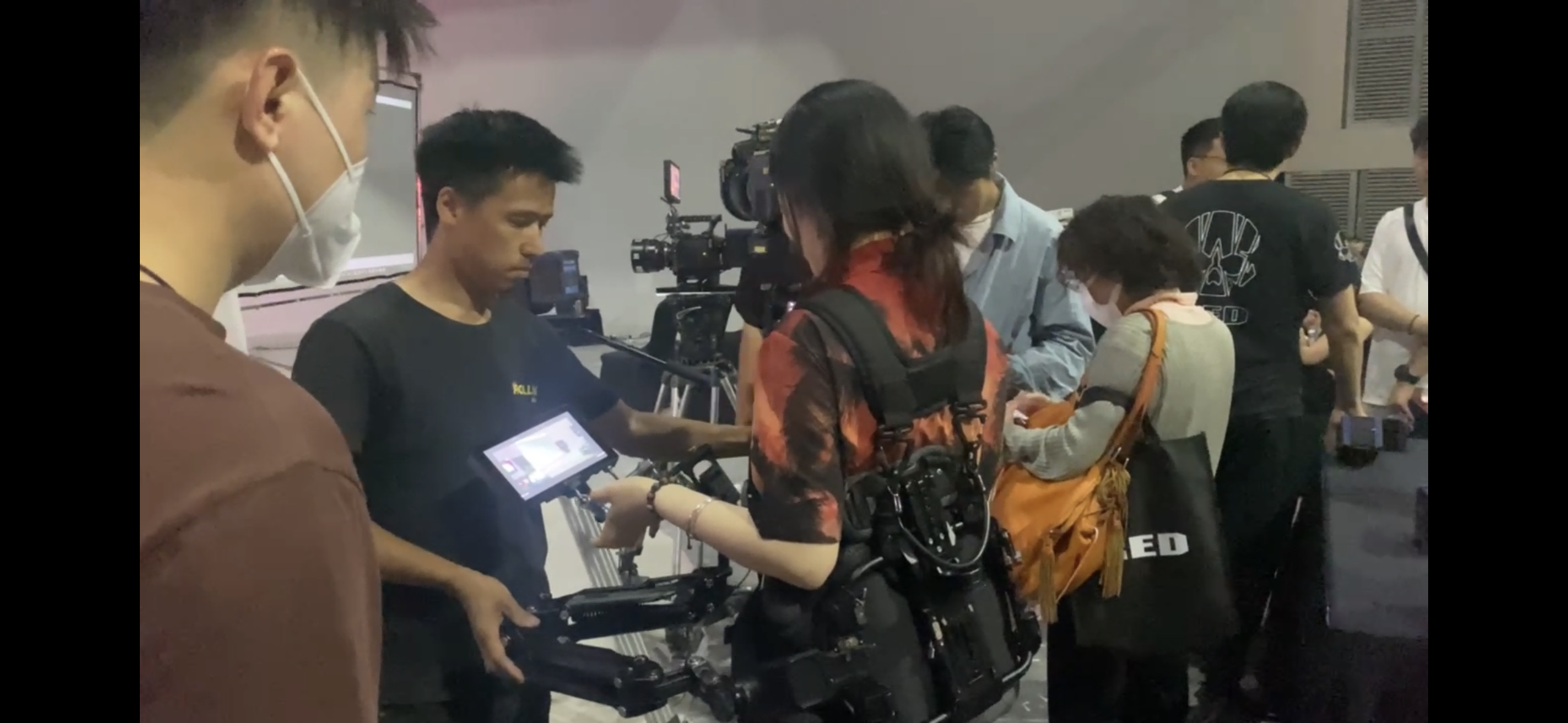 整个技术交流会同学们兴趣浓郁,21编导中期班夏妙文同学体验了由轻量化机身好处而带来的如影RS3+背心螳螂臂的运动设备组接,在此次学习机会中她表示本次实践活动同学们对目前摄影器材现状有了更多的接触与了解。