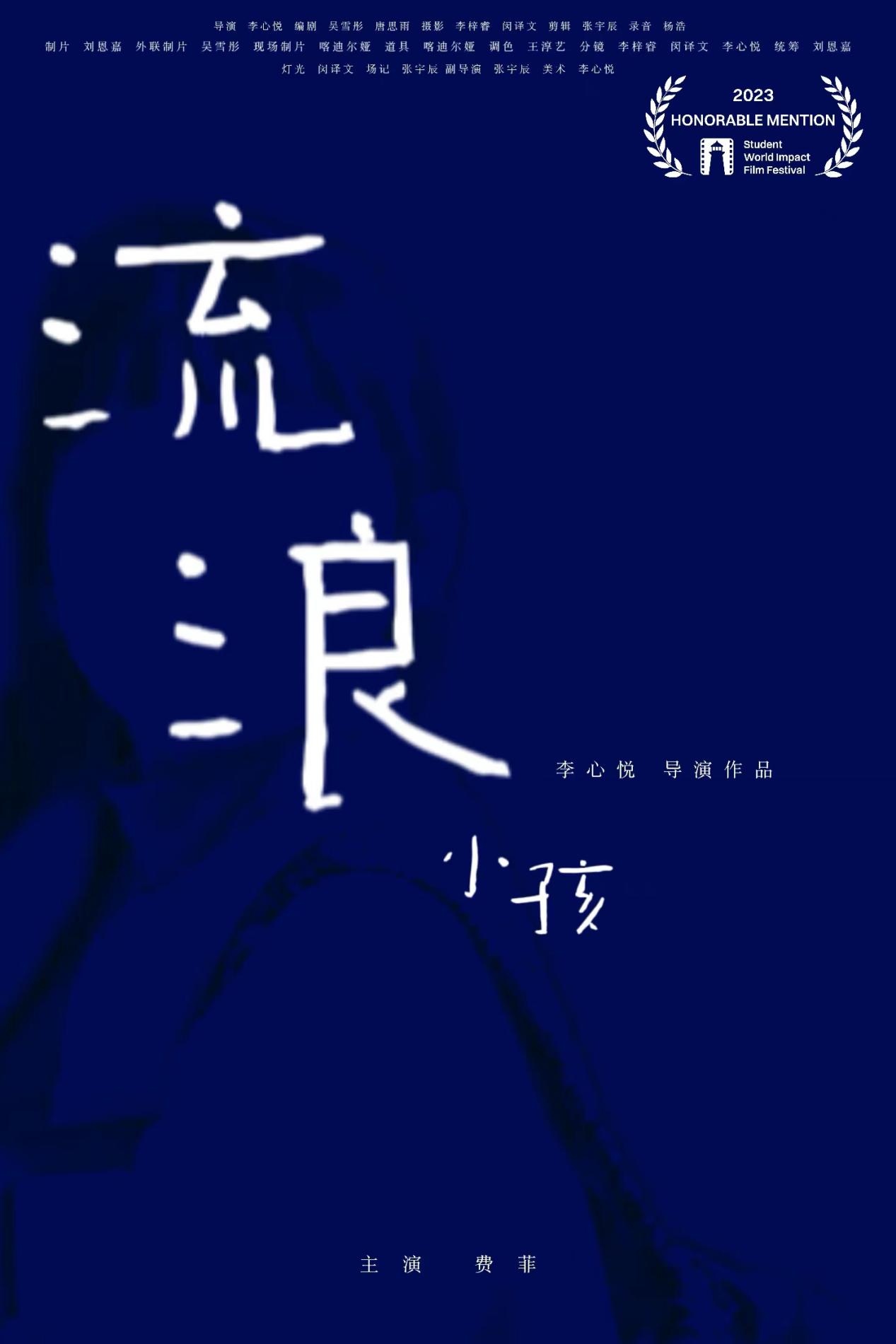 影视制作中心影视编导专业21级学生李心悦及其小组成员共10位同学,在专业课程教师们的悉心指导下完成的原创短片《流浪小孩》(Stray Child)成功入围并荣获荣誉奖。