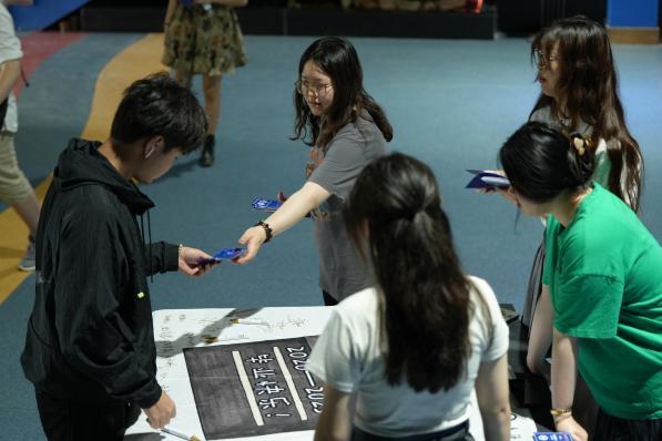 图3 同学们在签名布上签字