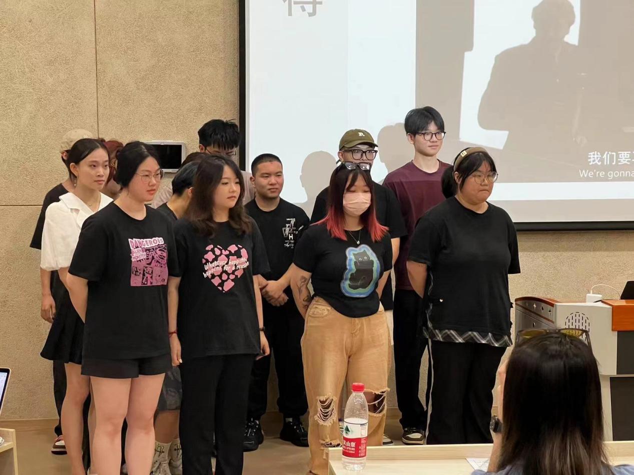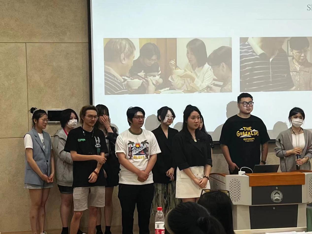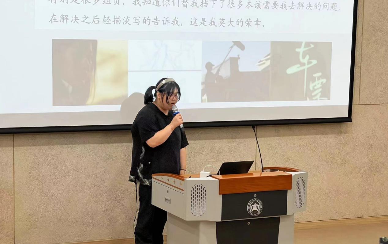 作品《车票散落的夜晚》组成员,在汇报时对自己整组工作进行了复盘,阐述了在作品创作过程遇到的困难及解决方案。