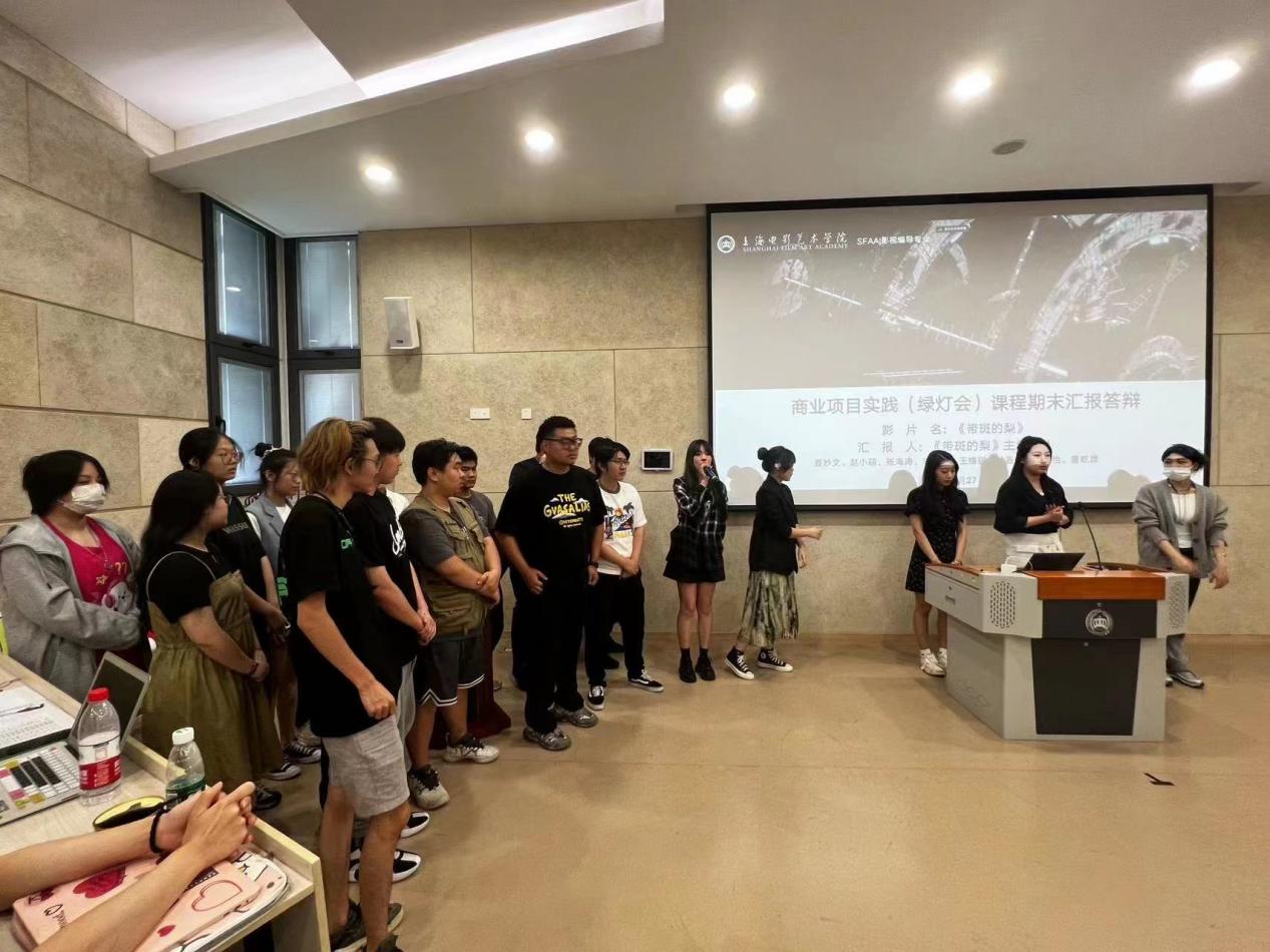 2023年6月26日,影视制作中心在B109教室进行了《商业项目实践》课程—“绿灯会”教学成果汇报答辩。参与本次汇报作品为:《车票散落的夜晚》、《带斑的梨》、《两张度假票的女友》。中心各工作室负责老师及产业导师进行现场指导评分,影视制作中心二年级全体同学参与并观摩本次汇报答辩。
