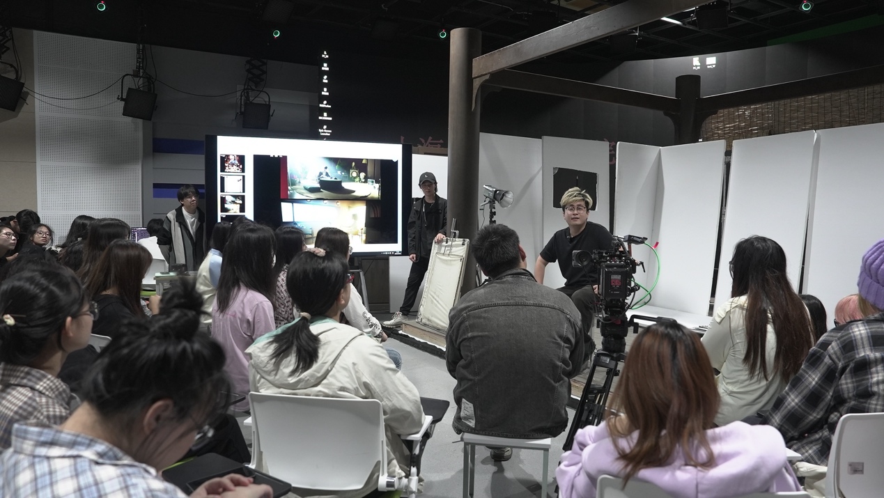 图4 肖老师在实景片场为学生讲授灯光实操课程