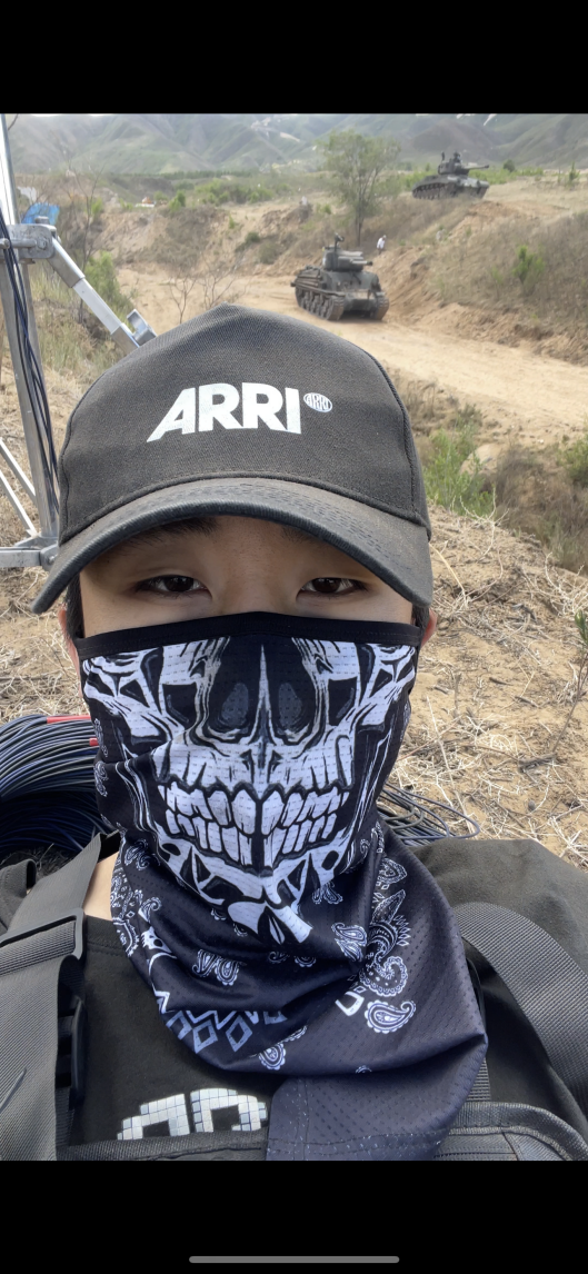 22级中期班张海涛同学表示:从2019年开始接触学习摄影,没敢想过通过在上电影视科创学院的学习,四年后自己的名字出现在陈凯歌导演的院线电影中。自五月底进组当天,第一场戏就是战争夜戏,是涉及演员朱一龙的爆破戏,拍了一宿大夜,因为出于兴奋与对待学习的热情却丝毫没有困意。45尺伸缩炮、大型无人机吊照明弹,爆破、枪战等等校园内难以见到的拍摄技术在这里都学习到了。也非常感谢学校能给我这次进入顶级院线电影剧组进行项目实践的机会。