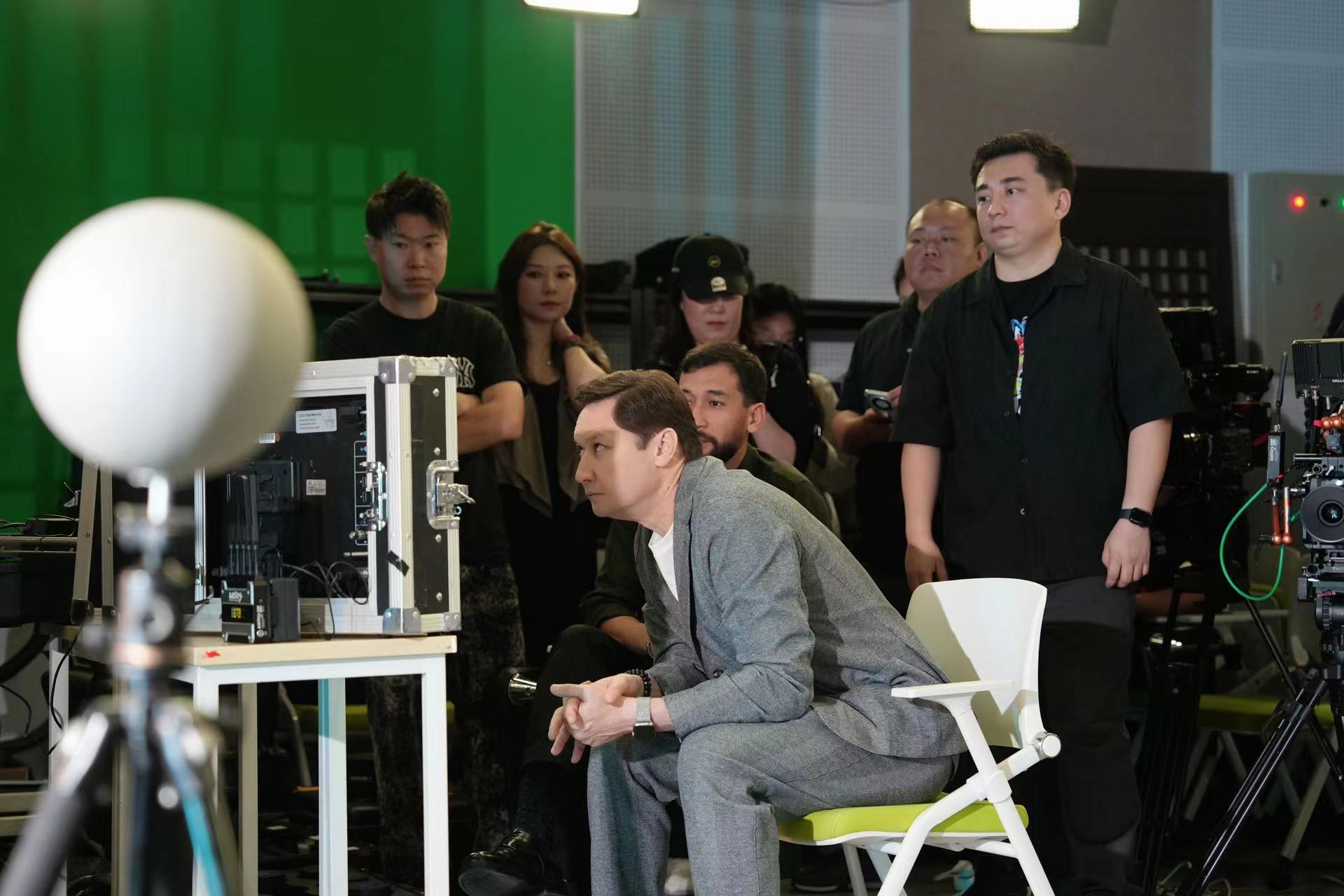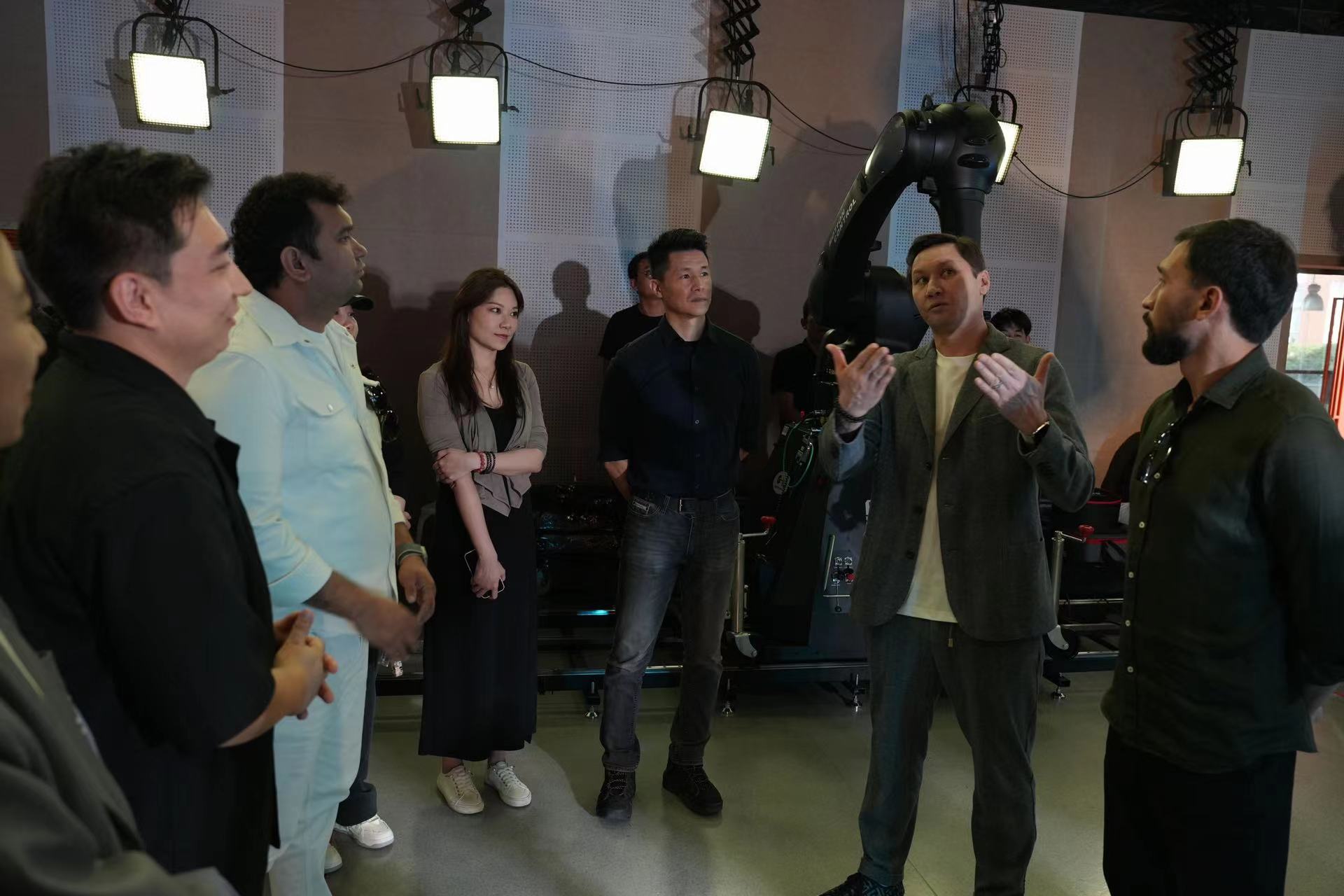 图2 阿扎马特•萨特巴勒德一行数字虚拟影棚参访交流
