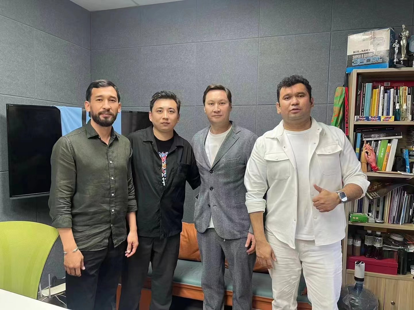 总裁阿扎马特•萨特巴勒德与褚亮院长就数字虚拟影棚的建设进行了深入探讨,褚亮院长介绍了数字虚拟影棚的建设并提出“电影最重要的武器就是艺术+技术”,阿扎马特•萨特巴勒德一行表示高度赞同。