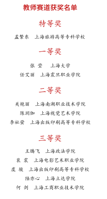 图2  上海市文化影视科技职业技能大赛教师赛道获奖名单